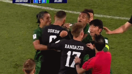 布拉坦、兰达佐与达万、张稀哲、池忠国互相推搡,张玉宁也冲过来阻止对手,双方14名球员发生了冲突。随后,主裁判警告了布拉坦、池忠国,但并未向两名球员出示黄牌。