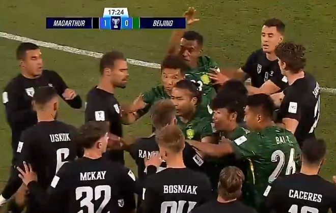 在2025-26赛季亚冠二级联赛小组赛第二轮,北京国安客场对阵麦克阿瑟。池忠国报复性铲倒对手,引发了双方球员的激烈冲突,连续2场亚冠二级联赛,国安球员都与对手发生冲突。